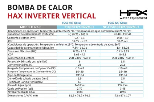 PREGUNTE CUAL BOMBA DE CALOR ES LA IDEAL PARA USTED SEGÚN EL TAMAÑO DE SU ALBERCA EN LITROS Y UBICACIÓN (CIUDAD). SI USTED COMPRA SIN UNA RECOMENDACIÓN DE NUESTRA PARTE Y HACE CASO OMISO A ESA INFORMACIÓN NO NOS HAREMOS RESPONSABLES SI USTED COMPRA UNA UNA BOMBA MAS CHICA DE LO QUE REALMENTE NECESITABA.