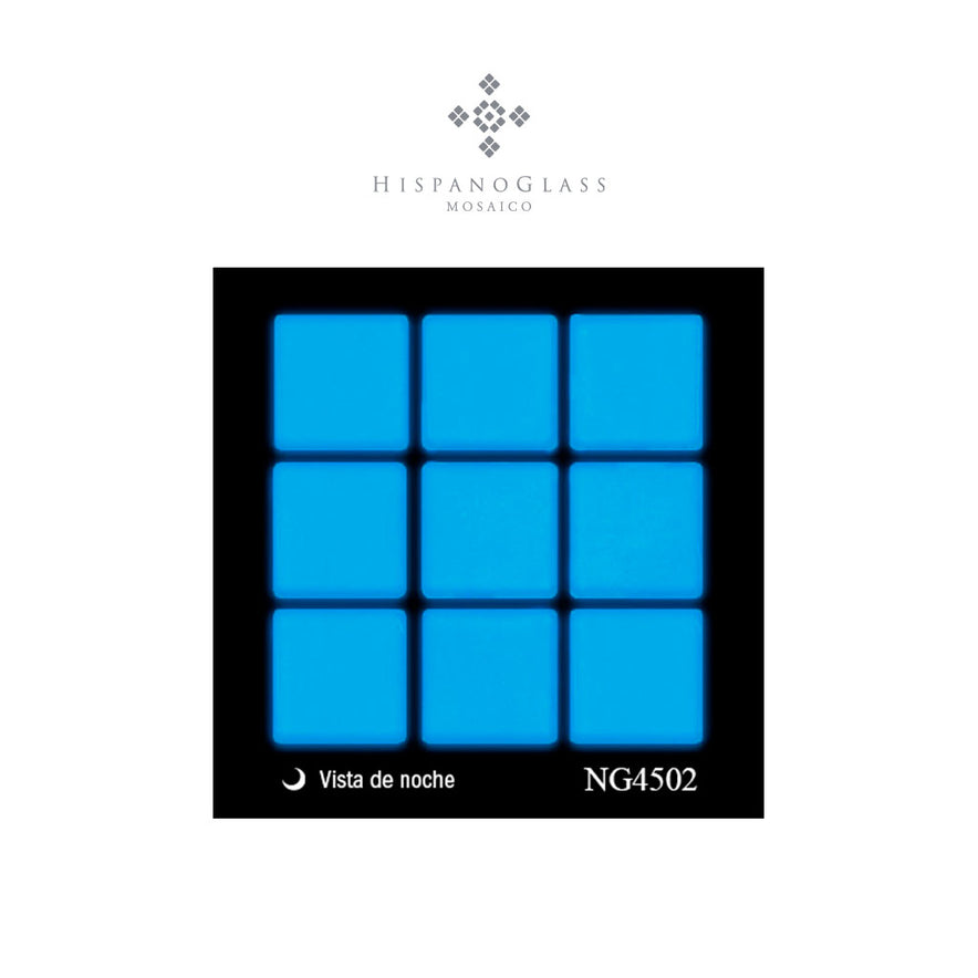El mosaico fotoluminiscente Hispano Night Glass es un revestimiento fabricado a base de vidrio molido mezclado con un pigmento fosforescente sometido a un proceso de sinterización.