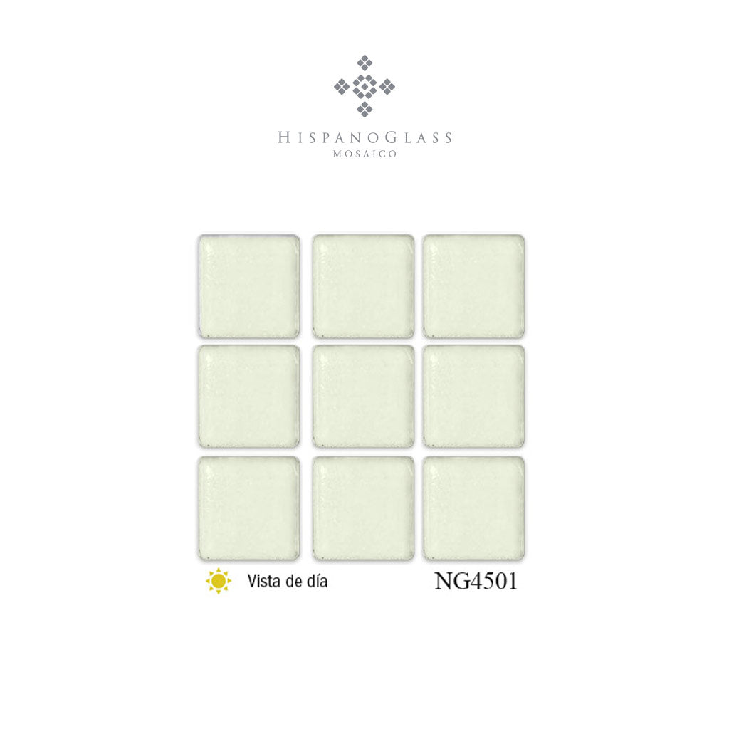 El mosaico fotoluminiscente Hispano Night Glass es un revestimiento fabricado a base de vidrio molido mezclado con un pigmento fosforescente sometido a un proceso de sinterización.